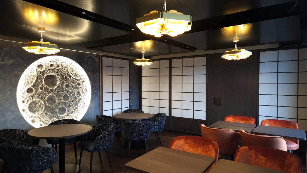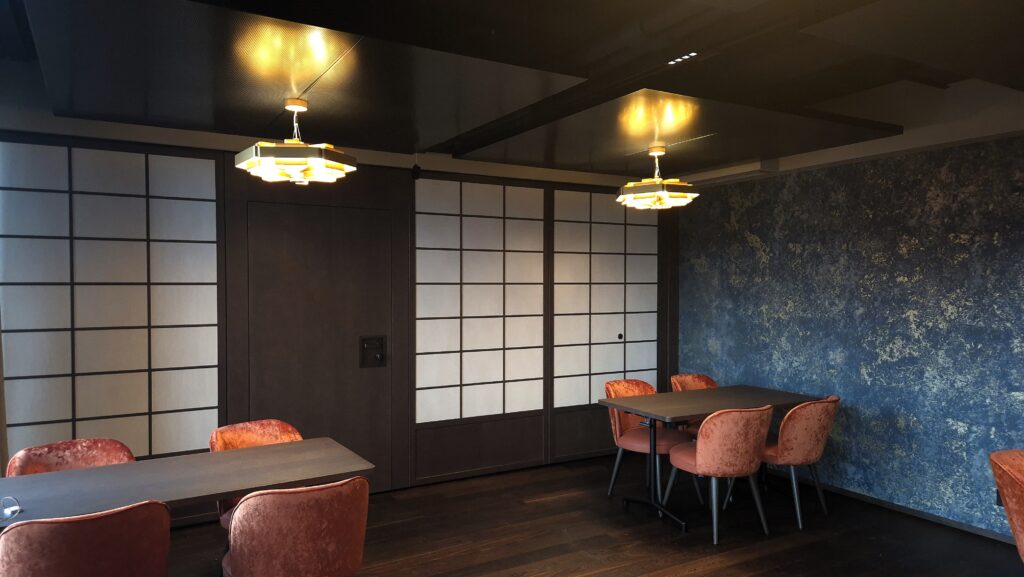 Sursee Varathan’s, Unterteilung Sitzungszimmer/Speisesaal, Oberfläche in gebeizter Eiche mit Tapetenfüllungen